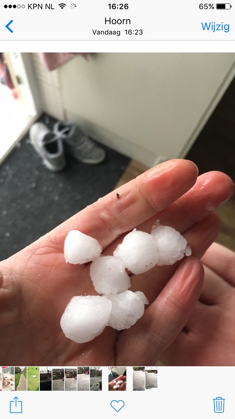 Zo, dat zijn best grote hagelstenen, Ellen! Hier, Brabant, inderdaad volop zon nog. ![]()