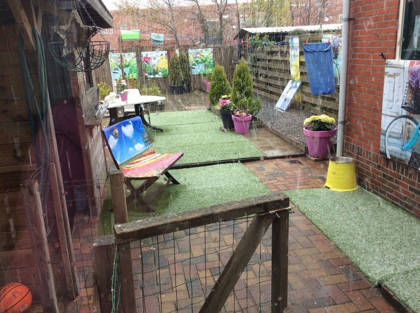 Gister was het echt heel gek weer, was van plan heerlijk bos rondje te doen maar dat zat er helaas niet in! iedere keer als ik naar buiten ging met de hondjes begon het te hagelen/natte sneeuw/regenen.. Zo jammer weer. Misschien dat het weer vandaag een beetje mee zit :) Vandaag worden er ook eindelijk nieuwe schuttingen in de tuin geplaatst happy!