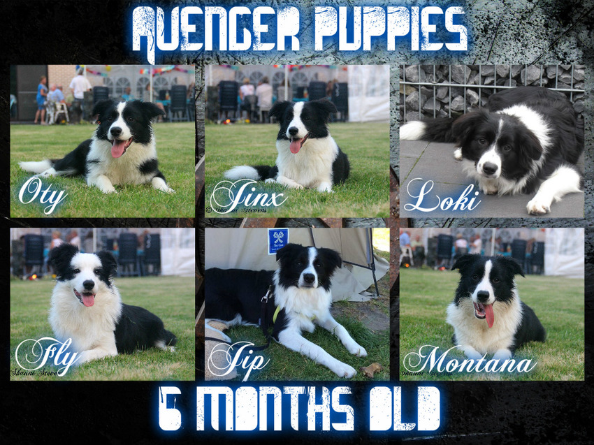 Het lettertype bij "Avenger Puppies 6 months old" vind ik niet zo passen bij het klassieke lettertype, dat je voor de hondennamen koos.