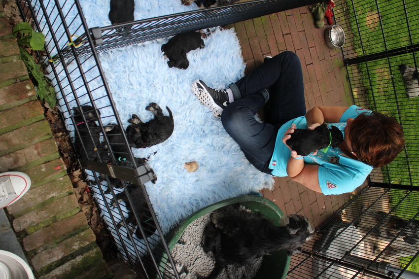 Dan is ze 11 weken en kan ze dus ook even rustig aan alles hier wennen en kan ik haar alvast wat kleine dingetjes als zit, af en poot aanleren. En uiteraard lekker overal socialiseren (uiteraard met mate). Ik ben 3 weken vrij dus álle tijd. ![]()