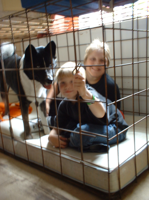 Los thuis ging niet, ik heb 2x naar huis moeten komen om de hond uit de dakgoot te halen, stel je voor! Indy was handig met sloten en moest in de buurt van de roedelleider zijn of in ieder geval niet alleen.