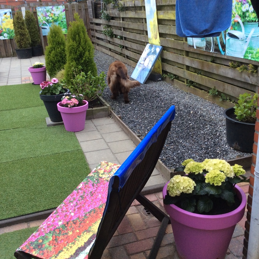 Wakker, plassen , eten, heerlijk een hond die weet waar het mag, ze plast nog niet buiten de tuin, wat onzekerheid van d'r, maar ze weet haar plek te vinden en gaat nergens in de tuin, de eerste dag aan de riem, nu vanochtend los, ze leert snel............de hele nacht mooi doorgeslapen, als eerste laat ik ze plassen....en kijk dan verder wat ze doet......eten is hap slik weg, heel vervelend, maar ze krijgt hier de ruimte om apart te eten....over een poos weet ze dat dat niet meer hoef, volgens mij proeft ze niet eens wat ze eet.