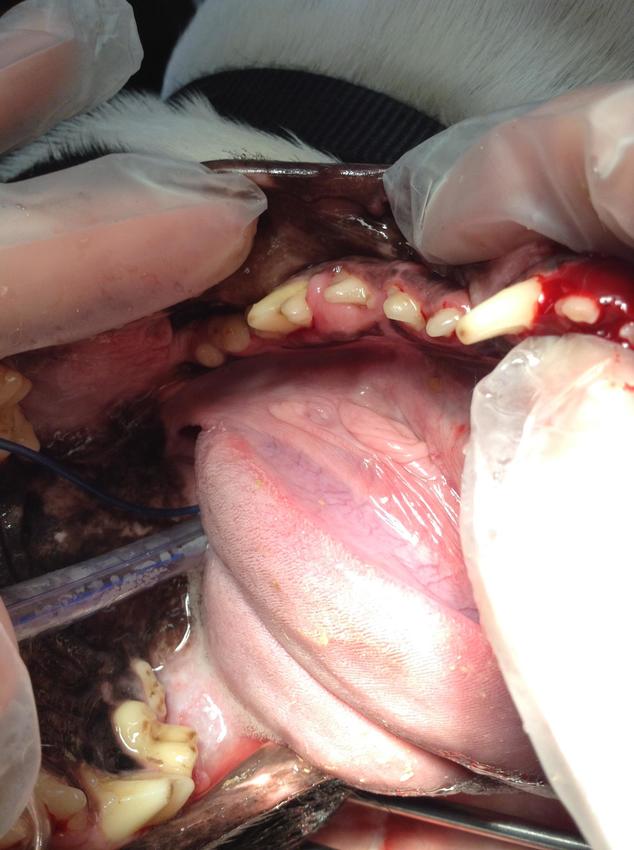 Ik moest aan tandvlees hyperplasie denken. http://www.toothvet.ca/PDFfiles/gingival_hyperplasia.pdf