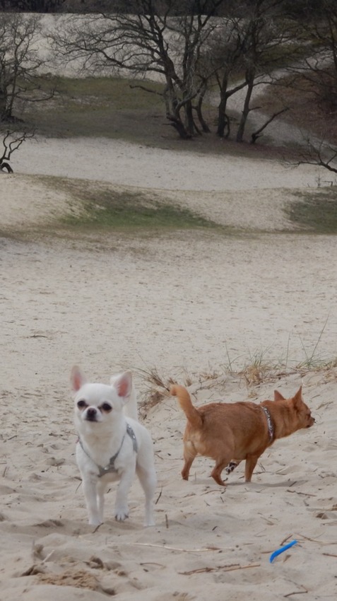 Hier in de wijk loop een vrouw met 2 chi's die kwa formaat hetzelfde zijn als Romy en Spikey.