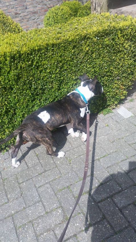 Vanmorgen schrok hij weer eens van de buren die hun rolluiken omhoog deden.. Toen hij net bij ons was is hij daar in het donker heel erg van geschrokken. Geeft best veel herrie namelijk als die dingen omhoog schieten ineens.