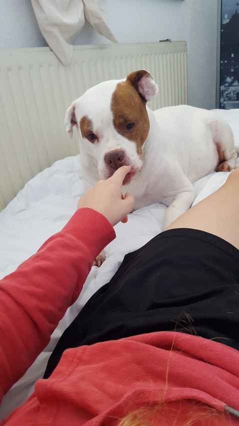 Noeska kruising herder/stafford 14,5 jaar geworden.