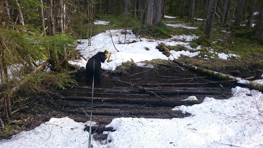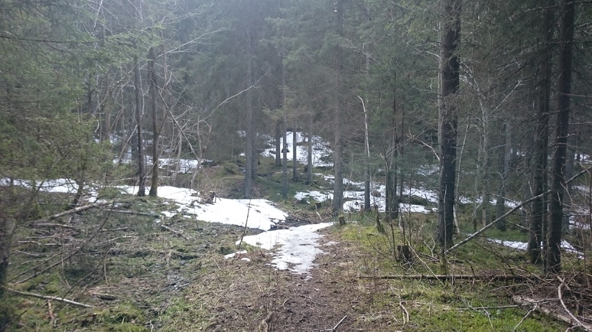 Gisteren hebben we toch maar eens geprobeerd om weer eens een wandeling in ons bos te maken. In de winter is dat niet te doen, want dan ligt er natuurlijk meer dan een meter sneeuw hier in Noorwegen en heb je ski's nodig om het bos in te gaan, maar nu het zo allemaal langzaamaan aan het smelten is, hebben we gisteren toch stiekem eventjes gekeken of het al begaanbaar is.