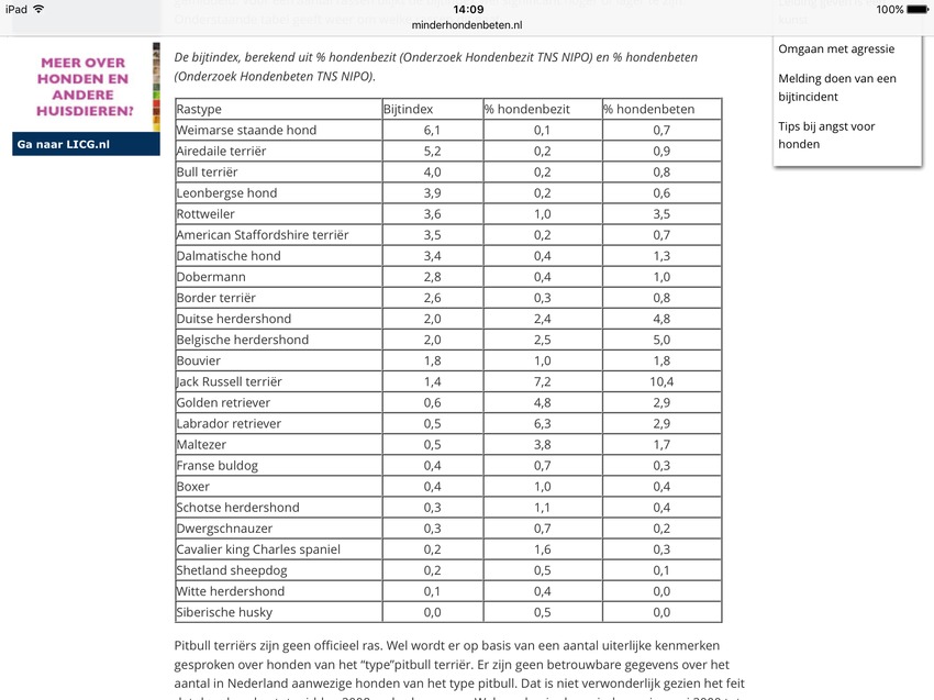 Hier een lijstje met bijtincidenten naar mensen: de husky geen. Die kan je wellicht ook helpen te bewijzen dat het niet jou hond was die de schade bij die vrouw veroorzaakte!