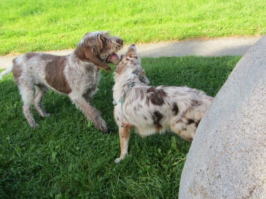 Na de les heeft Djaira nog gespeeld met een ander aussie teefje van 4,5 maand, toevallig zit zij ook hier op hp, Djaira heeft met Sia gespeeld, het vrouwtje van Sia heeft ook een aantal keer gereageerd in dit topic.