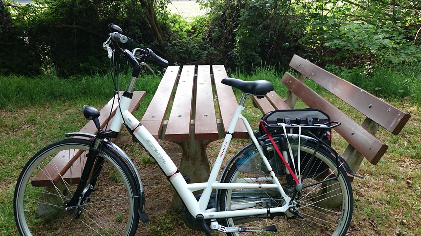Puck bleef thuis. Misschien een keer een fietsmandje aanschaffen ipv de kar. Is toch iets gezelliger om haar voor op de fiets te hebben.