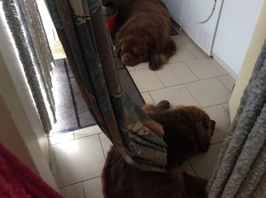 Willemijn de beren liggen lekker op de koude tegels. Bamse weer lekker getrimd.