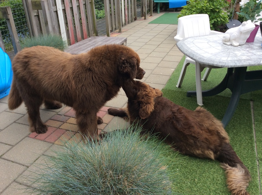 er mij vaak opgewezen, komt er een pup bij dan verkommerd Bams ...ze is te lang alleen geweest en veels te oud, nou ik ben blij dat ik Ogin gehouden heb, het gaat geweldig, ze zijn twee maatjes, en ja als het maar even te wild gaat, dan ben ik er, ik hou het goed in de gaten, maar als Bams er genoeg van heeft en weg loopt, is het een teken voor Ogin, genoeg, ik heb toch wel twee super honden, Ogin wordt groter en ouder, nu al een bijna perfecte hond, die gaat Bams achterna.....al heel aanhankelijk.