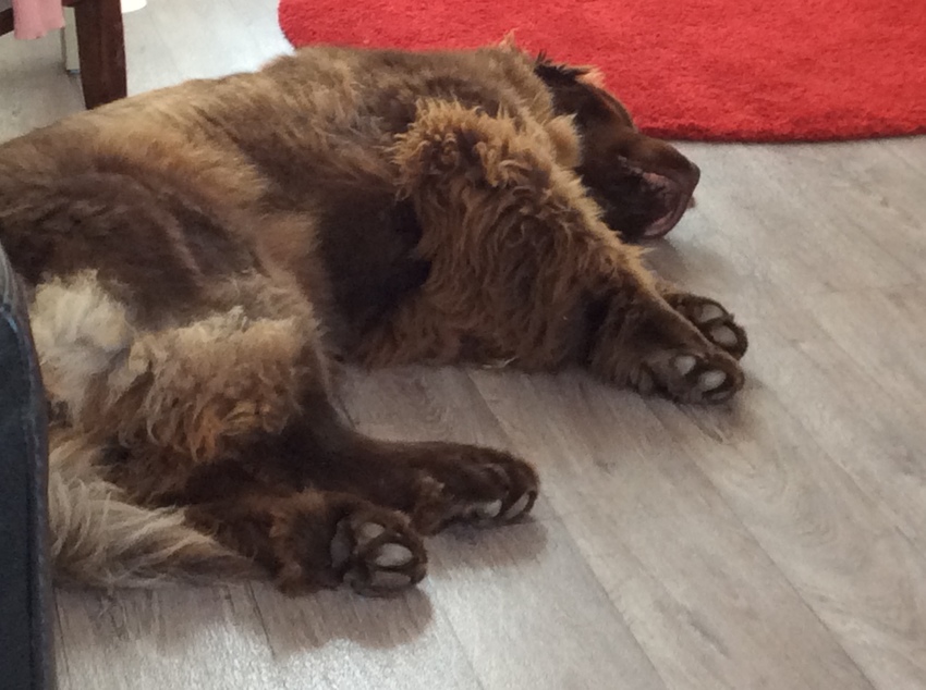 Het lijkt wel elke dag zondag rustdag voor joy. Vandaag heb ik weer gewerkt, vanmiddag nog even de deur panelen van m'n vriend z'n auto eruit getrokken om z'n speakers te vervangen. Joy slaapt veel en is heerlijk rustig. Als ze wat drukker doet stuur ik haar naar de plaats waar ze steeds lekker in slaap valt. Wel hazenslaapjes, maar beter dan achter de katten aan springen en rennen. Morgen wel even lekker stukje lopen.