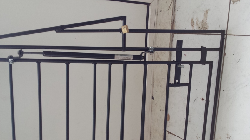 Gepoedercoat en voorzien van 2 gasdempers om het rek omhoog te houden. Aan weers zijde aan de zijkanten zijn schuif slotjes gemaakt zodat het hek niet vanzelf open kan schieten.