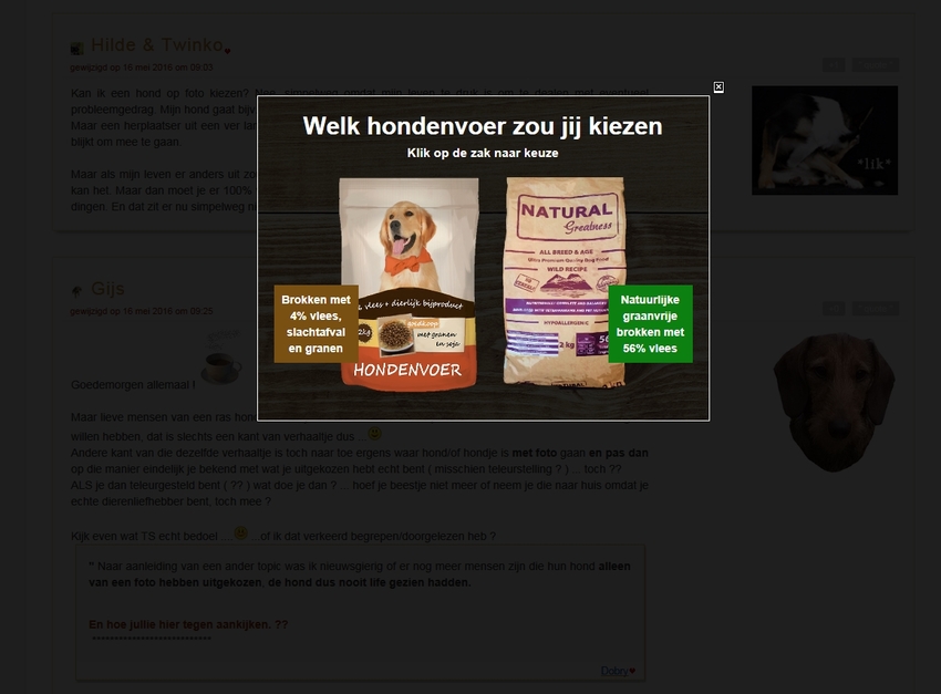 zie ik die Pop-Up over Natural Hondenvoer hier verschijnt ...