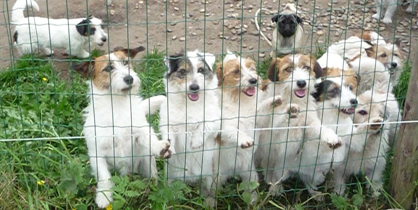 Geweldig.... een hele kudde Jackie's te trappelen achter het hekje.... 'mijn beurt, mijn beurt, mijn beurt' ... je ziet het ze bijna denken ![]()
