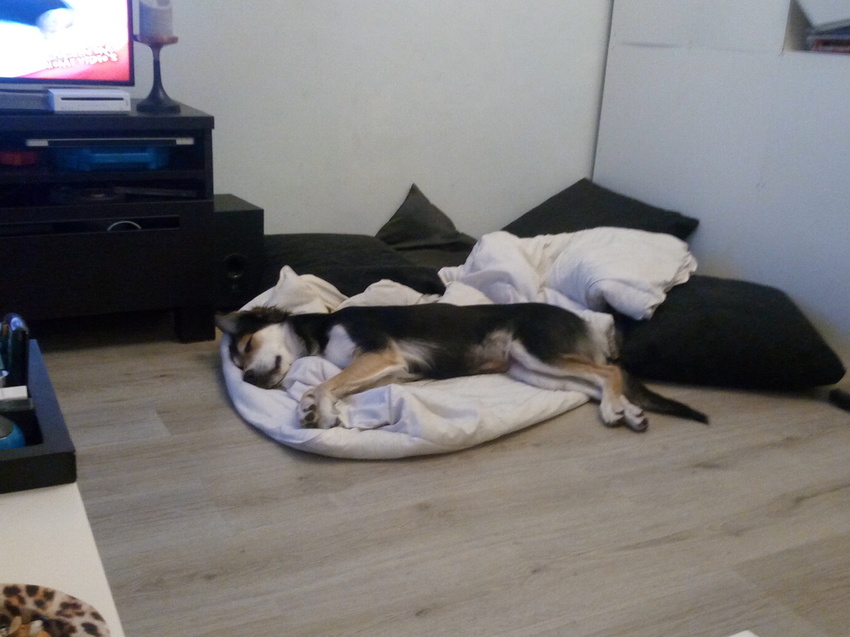 Ahh arm hondje! Moest je mee naar buiten? Ik heb dat zelfde probleem ook! Zullen we een campagne starten tegen onze baasjes ?![]()