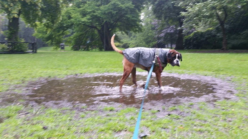 Net even snel eruit voor een plas maar dat werd alleen maar even gauw op de hoek. Prinses Chica gaat niet ver door de regen als dat niet nodig is![]()