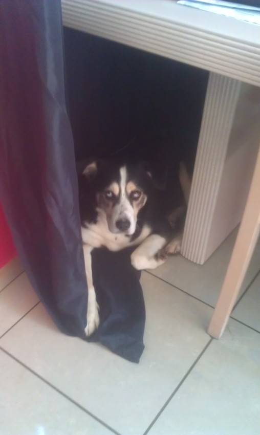 Hier gelukkig niet al te erg gedaan (Vlaams-Brabant, België) Veel regen en wat dikke knallen maar dan kijkt mevrouw even naar het baasje..."ah die blijft kalm...ik ook dan" en legt ze haar kop weer neer.