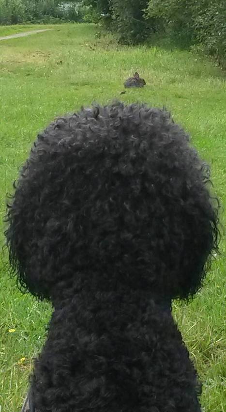 Er waren veel konijntjes die helemaal niet bang waren, black heeft er heel aandachtig naar zitten kijken. Ik had hem wel vast anders zou hij er achter aan gaan ![]()