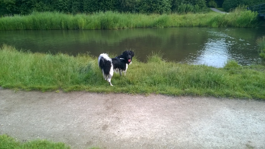 Puck en ik hebben vanmiddag over het grasveld gelopen, puck heeft flink lopen snuffelen. Die domme baas ook, gooit zomaar snoepjes weg.