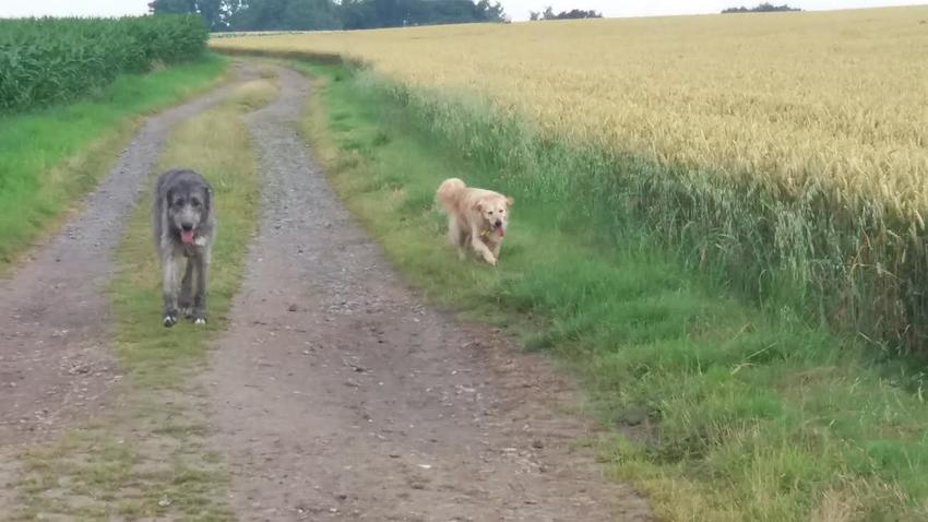 Vroeger trok hij aan de leiband. Nu komt hij naast me lopen en begint als het ware te huppelen, springen, gek te doen, rondjes draaien.