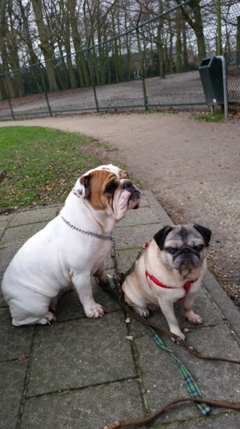Wij zijn Roosje de bull en Teddy de mops wij zijn teefjes en supperlief.