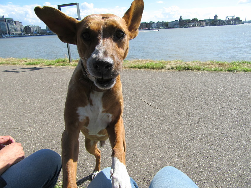 Wat gebeurt daar, Yoop???? Een heel blije hond, die het op alle manieren wil laten weten.... Wat is dit mooi ![]()