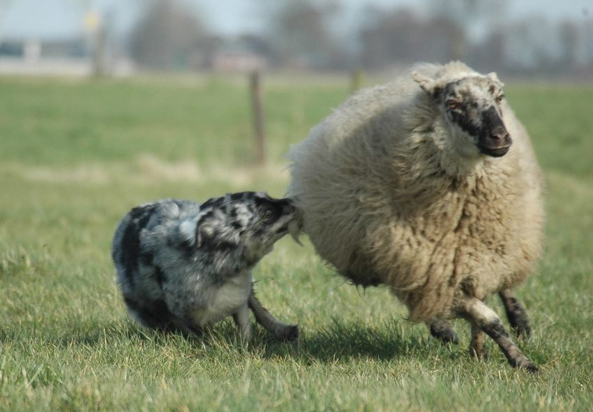 Bij schapendrijvers, is het instinkt al omgeslagen, ze zijn het verleerd om te jagen en te doden, maar ze drijven.