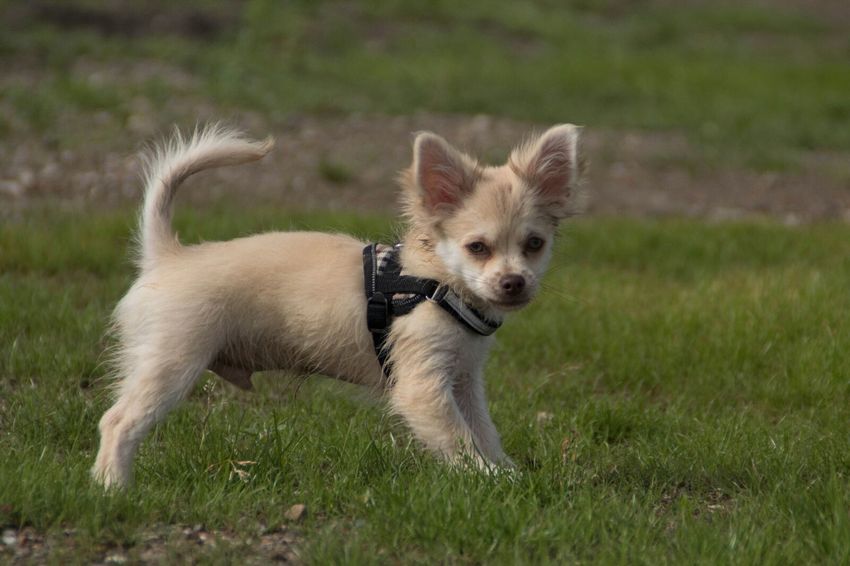 Natuurlijk heeft hij wel zijn puppystreken, maar ik zit niet met mijn handen in het haar.