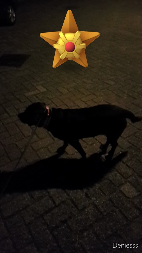 En toen opeens na 6 uur de server melding gehad te hebben deed hij het opeens weer om 22.45. Snel schoenen aan, puk dr halsband om, aan de riem en gaan! Na 40 minuten door de buurt gelopen te hebben, voor een kroeg de weg kwijt te zijn geweest en daardoor 6 keer heen en weer gelopen te zijn (ik wil niet eens weten wat die mensen dachten), 2 mensen heb zien lopen die ook pokemons aan het vangen waren (en me daarna te realiseren hoe 'verdacht' ik er wel niet bij moet lopen) heb ik toch mooi 3 pokemons binnen! ![]()
