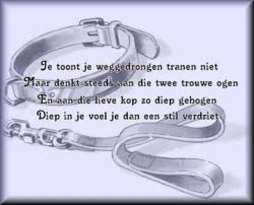 Mijn dierbaarste vriend is niet meer en alles wat je over hebt is de riemen herinneringen maar de rem en de herinneringen doen pijn en bij iedere herinnering komen de tranen Ik mis mijn Gunno zo erg zoals jij jou Denver mist het ware onze beste vrienden, Dikke knuffel en warme groet