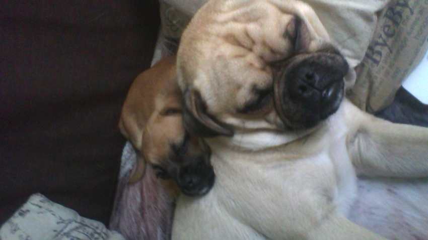 Ayla is net als Chewy een mops x beagle kruising.