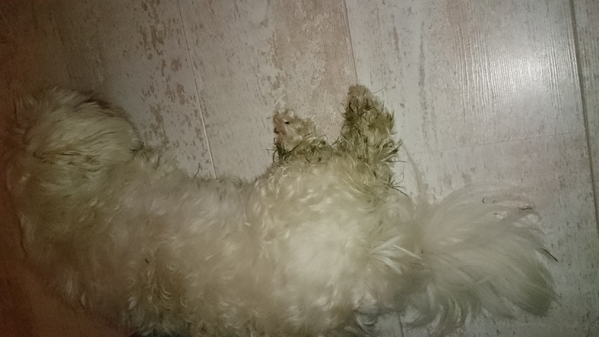 heerlijk, en ook groene pootjes haha, hier bij kortharige Romy blijft er geen gras in hangen, die wordt alleen maar groen![]()
