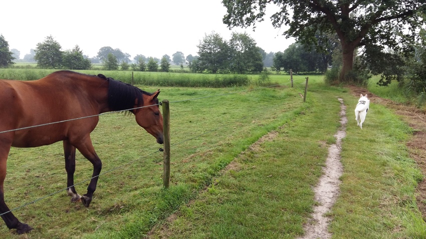 We werden nog een stuk vergezeld Door een nieuwsgierig paard