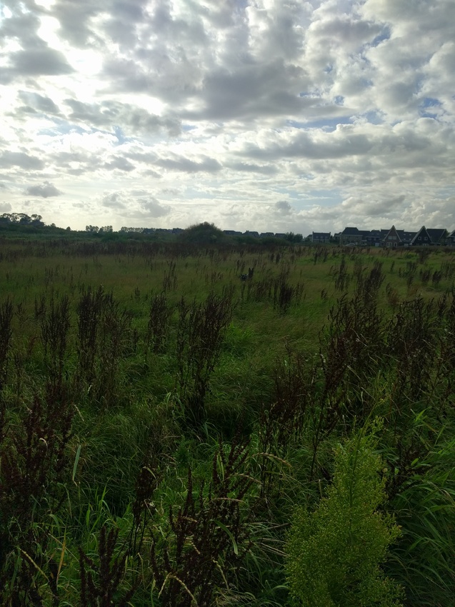 Wij hebben vanavond rustig gewandeld. Indy rende lekker door het hoge gras. Als je goed zoekt, vind je haar op de foto.