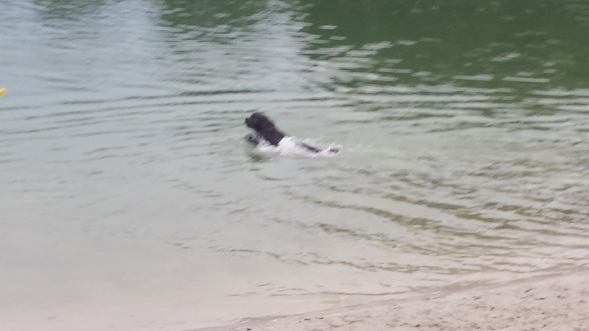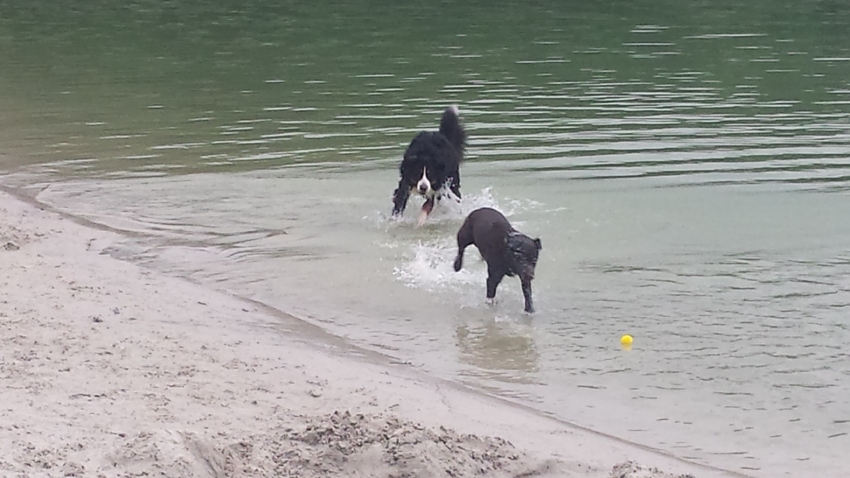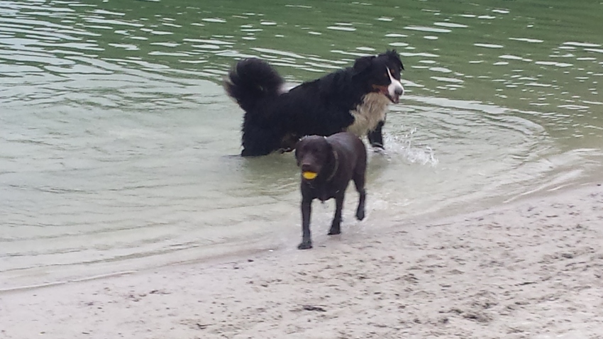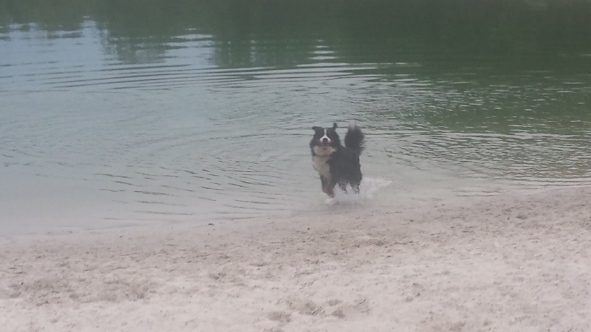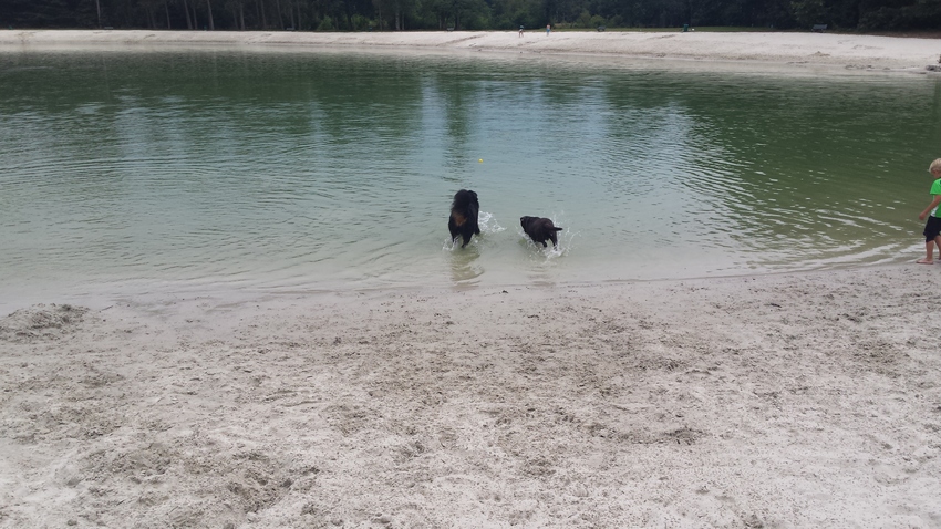 Nog naar een meertje geweest, Boaz tot aan zijn buik in het water geweest! ![]()