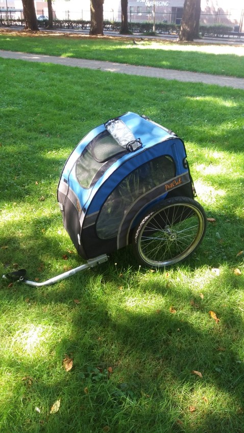 Te koop aangeboden wegens overcompleet. Petcab fietskar inclusief koppelstuk voor fiets. In goede staat.
