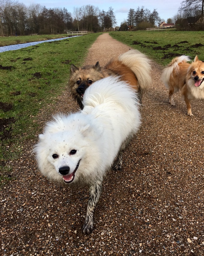 Mila kon helaas niet meewandelen, want ze heeft haar pootje bezeerd en kan niet zo lang/ver lopen op dit moment ![]()