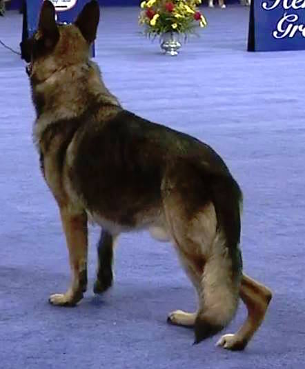 Het verschil tussen de Amerikaanse showlijnen en de Duitse is dat de meeste Amerikanen een rechte rug hebben en als ze netjes met de voeten naast elkaar staan, dan hebben ze ook een best nette rechte rug. De Duitsers blijven een scheve rug houden, hoe ze ook staan. Elk type heeft zo zijn problemen, bij de Duitsers zit het hem vooral in de rug, bij de Amerikanen in de achterbenen.