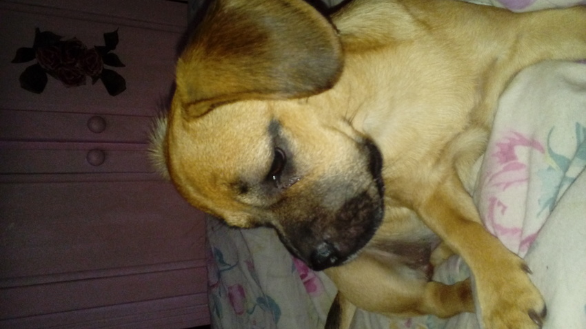 Ik wordt net wakker na mn dadgelijkse middag dutje met de honden en Ayla's ogen en voorhoofd zijn helemaal dik ![]()