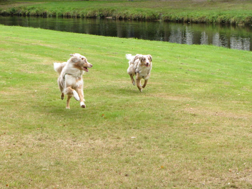 Sinds eind april dit jaar heb ik er een 2de aussie bij, wat kunnen Kaylin ( ruim 5,5 jaar en Djaira nu 8 maanden ) het goed met elkaar vinden, Ik had wel het vermoeden dat Kaylin een vriendin erbij wel leuk zou vinden, maar ze vinden elkaar niet alleen maar leuk, ze vinden elkaar geweldig en doen ook heel veel met elkaar.
