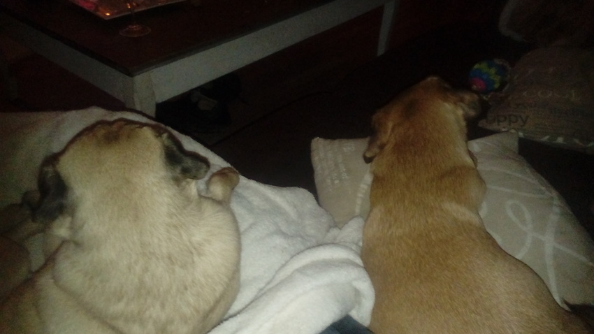 Ik dank de uitvinders op mijn blote knieen! Chewy deert het vuurwerk allemaal niks! Vorig jaar was het 1 grote hoop ellende.