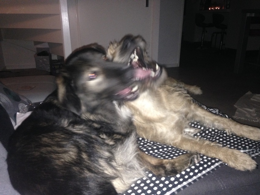 Toen een Nori staafje gepakt.......allebei naar de hondenbank en het lekker opgepeuzeld. Daarna was het weer een stuk beter met de meiden !!!!!!!