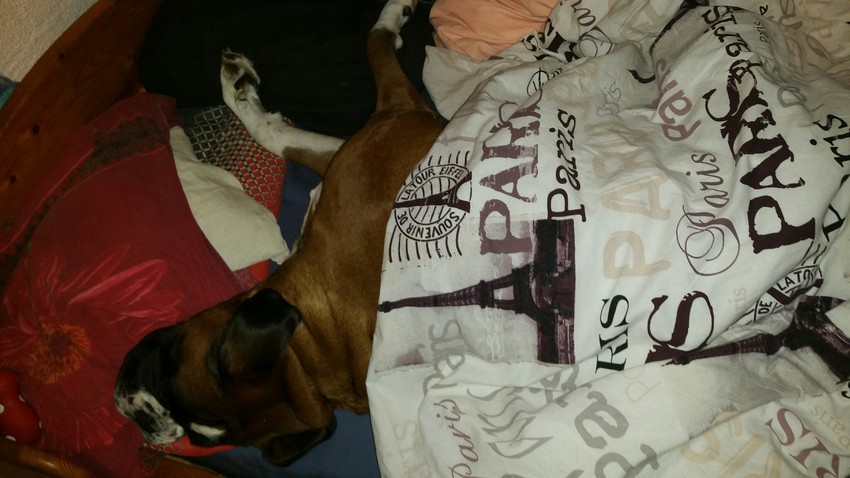 Merk aan Daya dat ze het 's avonds ook wat kouder heeft, ook hier in huis. De verwarming wordt hier altijd uitgezet rond een uur of 11 en ze krult dan helemaal op in de bank. 's Nachts ook diep onder de wol met een hoop gesteun en gekreun.
