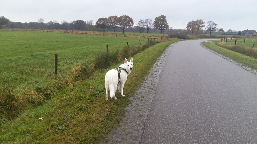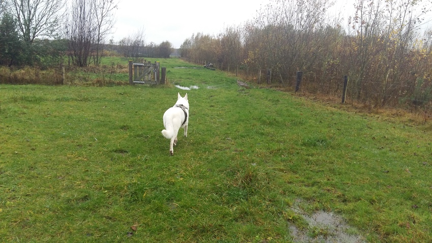 Shadow mocht vanochtend de route kiezen. Dus we hebben bijna anderhalf uur gewandeld. Flink veel regen gehad onderweg. Maar ik had het echt zo warm. Een dikke leren winterjas aan en mijn leren gevoerde laarzen. Maar de jas kon ook niet uit vanwege de regen. Maar wel echt heerlijk gewandeld.