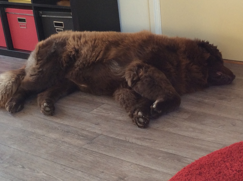 ....bams heeft er genoeg van, hihi, weggehaald, nee ogin krijgt het niet, morgen krijgt bams het gewoon buiten, enne ik kan aan het schoonmaken, kleden in de was en hondenpoten schoonmaken.