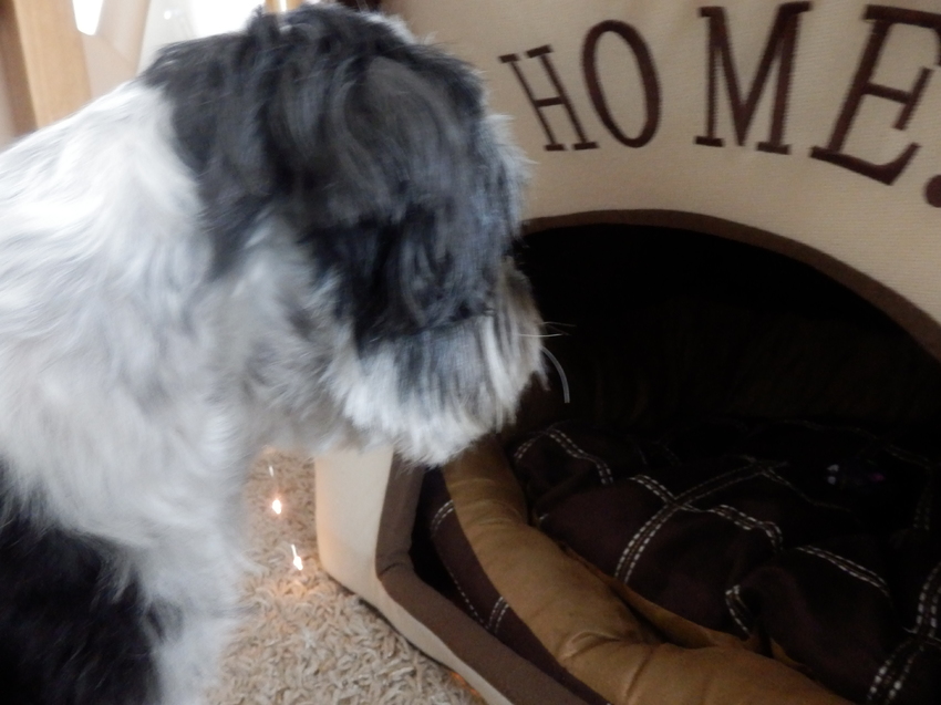 Ik wilde graag wat foto's van Spaiky maken in het versierde huisje. Spaiky had een heel ander plan. Hij vond het veel leuker om mij te irriteren door een balletje te pakken en te blaffen. Daar zijn de gekste foto's uitgekomen. Ze zijn echt niet allemaal even scherp en mooi maar het gaat om het idee. ![]()
