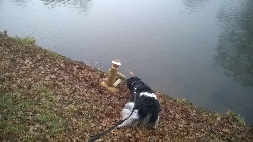 Kwamen onderweg nog iets geinigs tegen, een houten poppetje die aan het vissen is:
