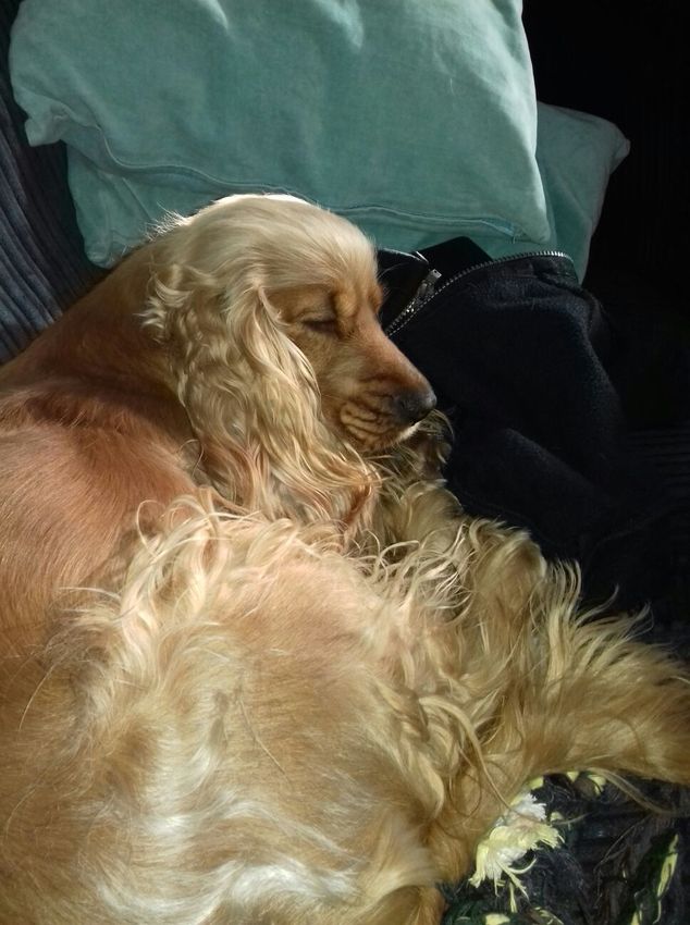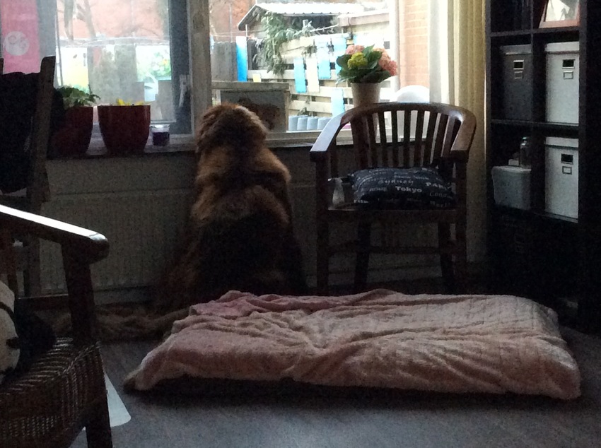 Hier zijn beide honden 's ochtends niet zo snel, die gaan even plassen en eten. En daarna liggen ze weer te relaxen.